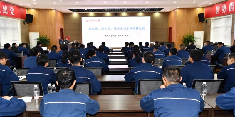 簽約儀式后,郭立宏還從“新背景、新格局、新變革、新未來”四個方面為與會人員做了一堂精彩紛呈的授課,深入淺出地對全球經(jīng)濟發(fā)展進行了深刻剖析,對鋼鐵行業(yè)形勢和人才建設(shè)進行了分析解讀。并結(jié)合龍鋼公司實際,為企業(yè)發(fā)展提出了建設(shè)性意見和建議。