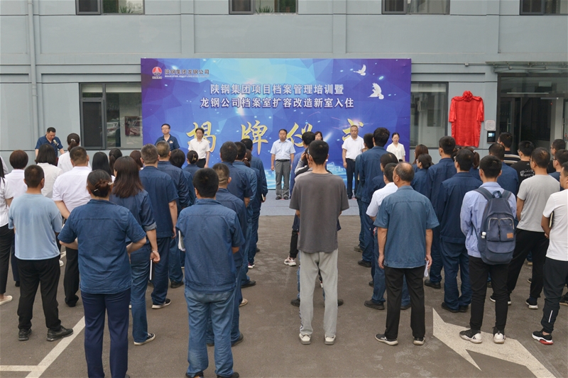 7月22日,陜鋼集團(tuán)項(xiàng)目檔案管理培訓(xùn)暨龍鋼公司檔案室擴(kuò)容改造新室入住揭牌儀式在龍鋼公司檔案室樓前順利舉行。韓城市檔案局副局長(zhǎng)孫燕、寶山鋼鐵公司檔案咨詢(xún)總監(jiān)葛敏、陜西金銀島建筑工程有限公司董事長(zhǎng)張忠潮、陜煤集團(tuán)綜合部業(yè)務(wù)主任張春喜、陜鋼集團(tuán)高級(jí)經(jīng)理張靜等應(yīng)邀參加,龍鋼公司副總經(jīng)理朱元洲及漢鋼公司、龍鋼集團(tuán)、創(chuàng)新研究院以及脫硫提升、煉鋼技術(shù)改造等項(xiàng)目部、施工單位檔案負(fù)責(zé)人參加儀式。