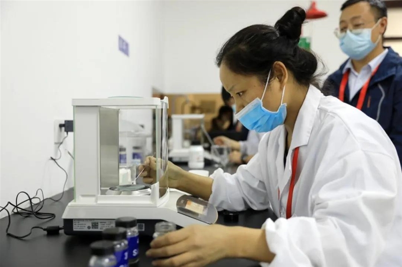 分析化驗(yàn)工的實(shí)操考核內(nèi)容包括EDTA標(biāo)準(zhǔn)溶液的配制和生鐵酸溶硅含量測定兩部分。整個過程中,選手們注意力高度集中,操作細(xì)節(jié)不容許絲毫大意,準(zhǔn)確的稱量、精確的藥品用量、嚴(yán)謹(jǐn)?shù)闹茦、穩(wěn)如泰山的移液……各顯身手,展絕技,亮絕活。