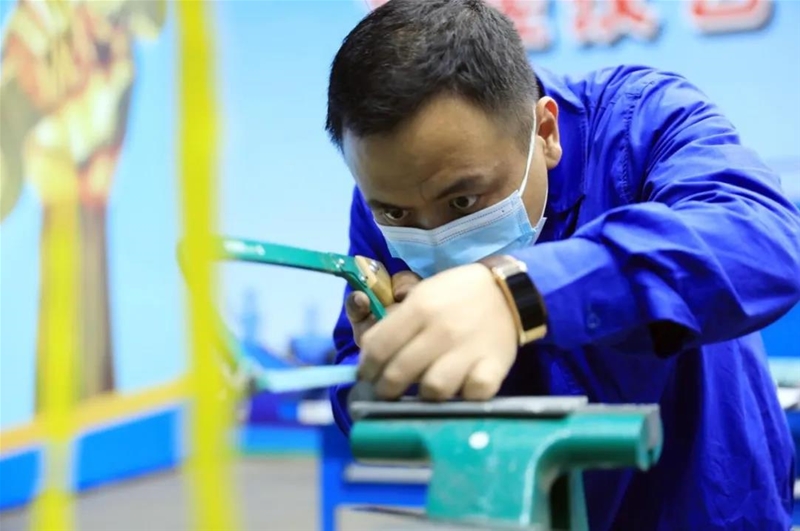 在維修鉗工培訓(xùn)基地,各參賽選手斗志昂揚(yáng)、躍躍欲試,紛紛拿起各自工具,仔細(xì)測量,精確切割,精心打磨,精雕細(xì)琢,一時間,搓、鋸、削、鉆各種聲音此起彼伏,合奏出一曲令人震撼的交響樂。