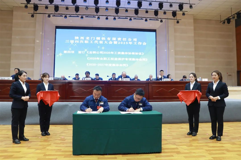 會上簽訂了《龍鋼公司2025年工資集體協(xié)商協(xié)議》《2025年女職工權益保護專項集體合同》《2025—2027年度集體合同》《2025年經(jīng)營目標責任書》《2025年安全環(huán)保目標責任書》。