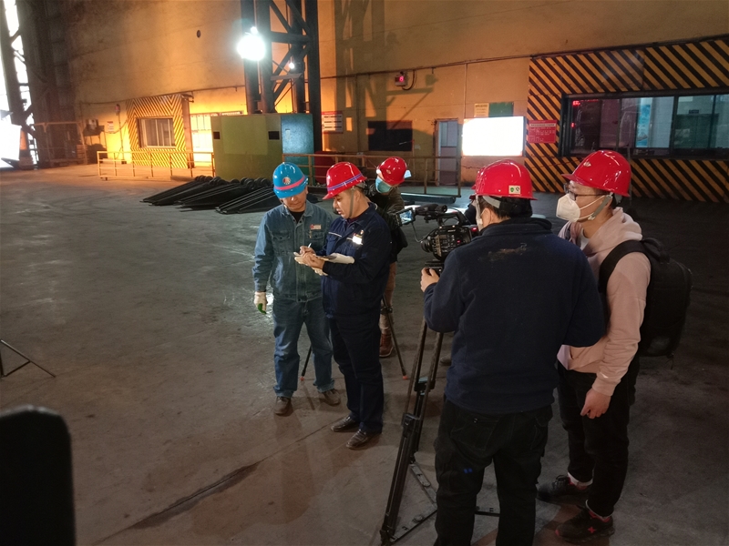 3月13日13:21,拍攝組在龍鋼公司煉鐵廠5#高爐進行專訪拍攝。