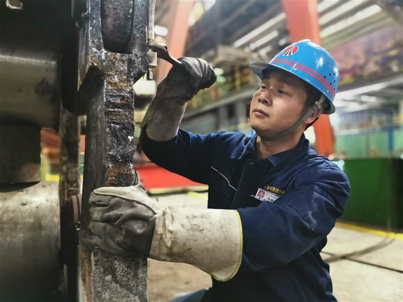 一次搶修作業(yè),一個流的鋼水漏到輥子上無法轉(zhuǎn)動,噴淋管噴咀堵塞,再加上兩邊1000多度的鋼坯還在生產(chǎn),100多度的水蒸氣彌漫在整個狹小的空間中。為了保證生產(chǎn),他毫不猶豫,直接拿著毛巾把臉裹起來就沖了進去,卸噴咀、清粘鋼……一路走來,這樣的場景,他經(jīng)歷了許多次,但他從不畏懼高溫和困苦,精心守護著連鑄的安全生產(chǎn)。