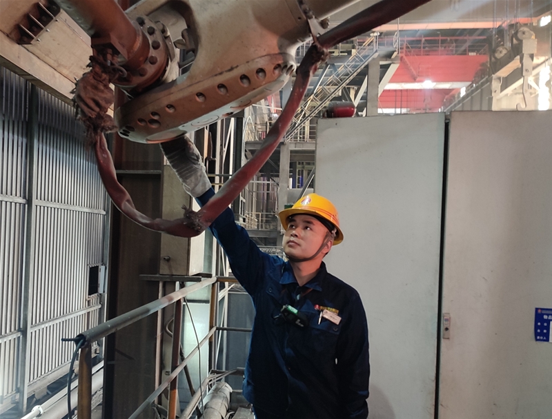 在3#轉(zhuǎn)爐爐下渣道,當(dāng)爐渣的余熱還充盈在爐下每一處時,更換爐下軌道的檢修作業(yè)已經(jīng)開始了。維修班長徐永斌正帶著幾位工友在拆卸渣道軌道上的連接板,由于連接板螺栓上得緊,特別難拆,幾個人用專用工具,卡在螺栓上,咬緊牙關(guān),一毫米一毫米地拆卸著。在渣道的另一頭,維修主管趙雷和安全員高明生帶領(lǐng)人員正將新軌道一米一米抬過去。遠(yuǎn)遠(yuǎn)望去,那些“紅、黃、藍(lán)”分工協(xié)作,配合得天衣無縫。他們一個個臉上掛滿了汗珠,忍受著炙烤,但他們無暇理會這些,他們時刻在想著,在安全的保證下,一定要高效完成檢修任務(wù),交上一份滿意答卷。
