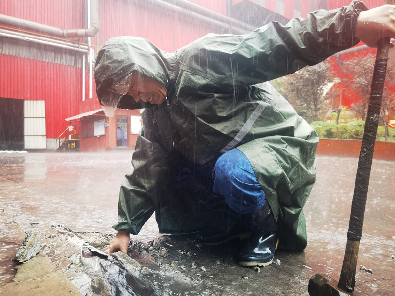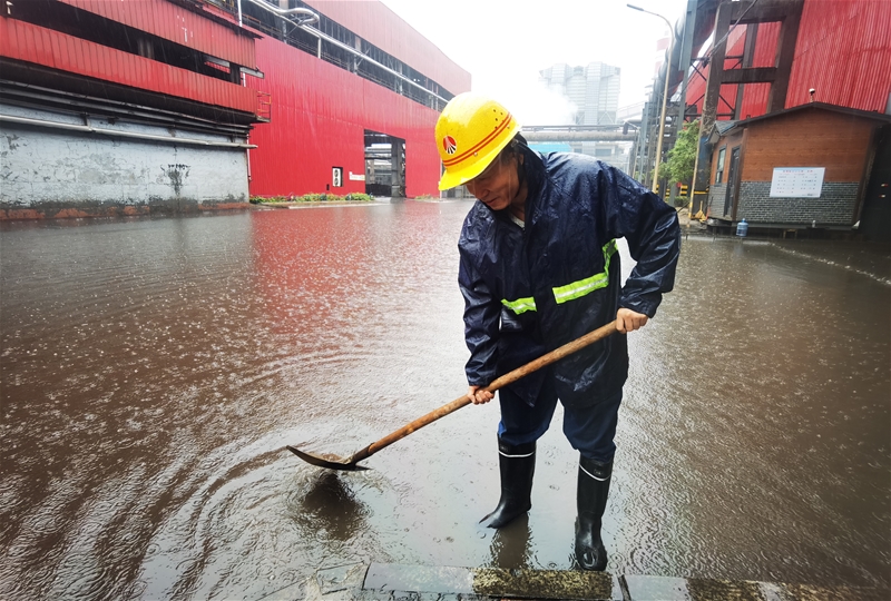 在煉鋼南路廢鋼跨各門(mén)口,一場(chǎng)與風(fēng)雨的較量也在持續(xù)上演。暴雨如注,也最考驗(yàn)責(zé)任擔(dān)當(dāng),只要是急難險(xiǎn)重,他們都挺身而出。由于受風(fēng)的影響,廠房雨檐流下的雨水有倒灌入廠房的趨勢(shì)。“快,跟我來(lái),我們將跨口的水路再疏通一下。”在安全員薛云峰的號(hào)召下,大家毫不猶豫,沖了過(guò)去。他們團(tuán)結(jié)一心、毫不退縮,挖的挖,鏟的鏟,掏的掏……很快將水路疏通徹底,使廢鋼廠房?jī)?nèi)處于安全狀態(tài)。在戰(zhàn)斗過(guò)程中,由于雨水深淹,不少隊(duì)員一路趟著沒(méi)過(guò)腳面的積水,行來(lái)往去、毫不理會(huì)……雖然風(fēng)雨無(wú)常,但是他們心懷全局、意志堅(jiān)定,不達(dá)目標(biāo)不罷休。風(fēng)雨之中,他們是戰(zhàn)斗到底的“真王者”。