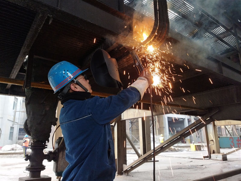 現(xiàn)場焊花飛濺,從拆除廢舊鋼管到焊接新的橋架,3#爐電焊工何澳華作業(yè)細致認真,每天6小時不間斷地進行焊接作業(yè),始終專注如一。