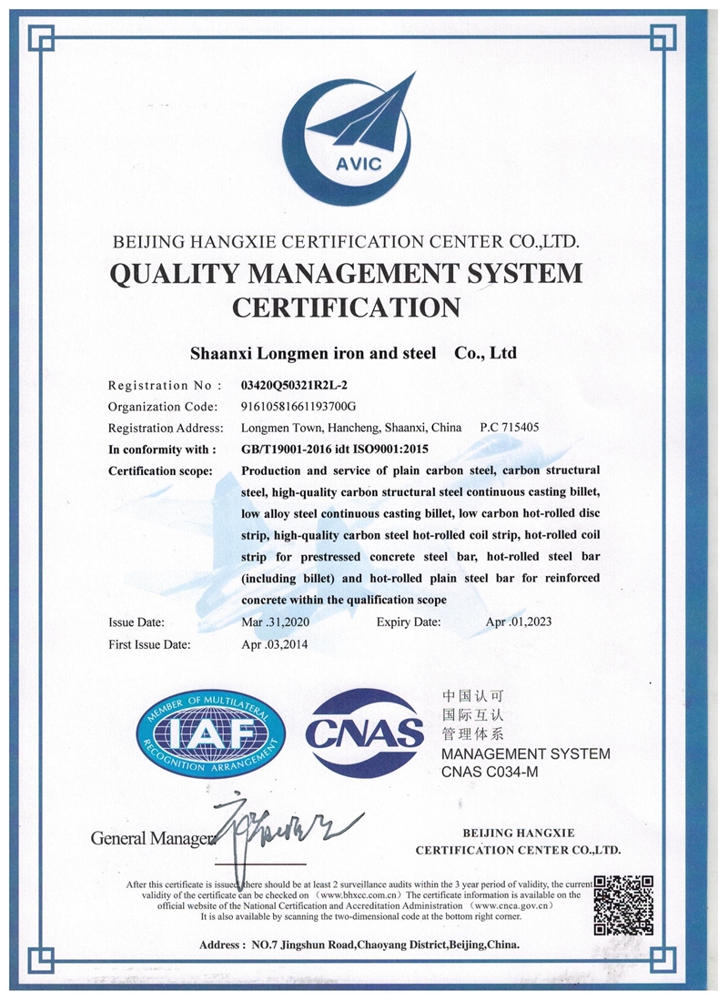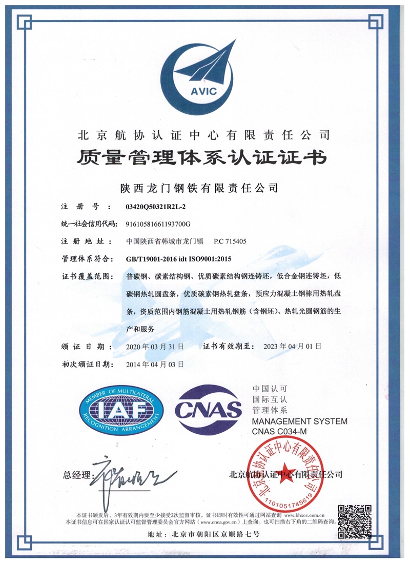 公司自1985年開(kāi)始宣貫全面質(zhì)量管理,1999年通過(guò)了ISO9001:1994質(zhì)量管理體系認(rèn)證, 2011年公司成功實(shí)施了質(zhì)量、職業(yè)健康安全、環(huán)境管理體系一體化整合,建立了完善的質(zhì)量管理體系文件,編制了一體化《管理手冊(cè)》及通用、專(zhuān)業(yè)程序文件,編制了《燒結(jié)廠(chǎng)工藝操作規(guī)程》、《煉鐵廠(chǎng)工藝操作規(guī)程》、《煉鋼廠(chǎng)工藝操作規(guī)程》、《軋鋼廠(chǎng)工藝操作規(guī)程》、《檢驗(yàn)和試驗(yàn)規(guī)定》、《理化檢驗(yàn)操作規(guī)程》等一系列操作規(guī)程及各類(lèi)作業(yè)文件,實(shí)現(xiàn)了從原料進(jìn)廠(chǎng)到產(chǎn)品出廠(chǎng)全過(guò)程質(zhì)量管控。在“堅(jiān)持科學(xué)協(xié)調(diào)發(fā)展,提升績(jī)效持續(xù)改進(jìn);遵守法規(guī)控制風(fēng)險(xiǎn),節(jié)能減排綠色低碳;打造“禹龍”百年品牌,不斷增強(qiáng)顧客滿(mǎn)意”的一體化管理方針框架下,制定了切實(shí)可行的質(zhì)量目標(biāo),確保了體系持續(xù)運(yùn)行的適宜性和有效性。