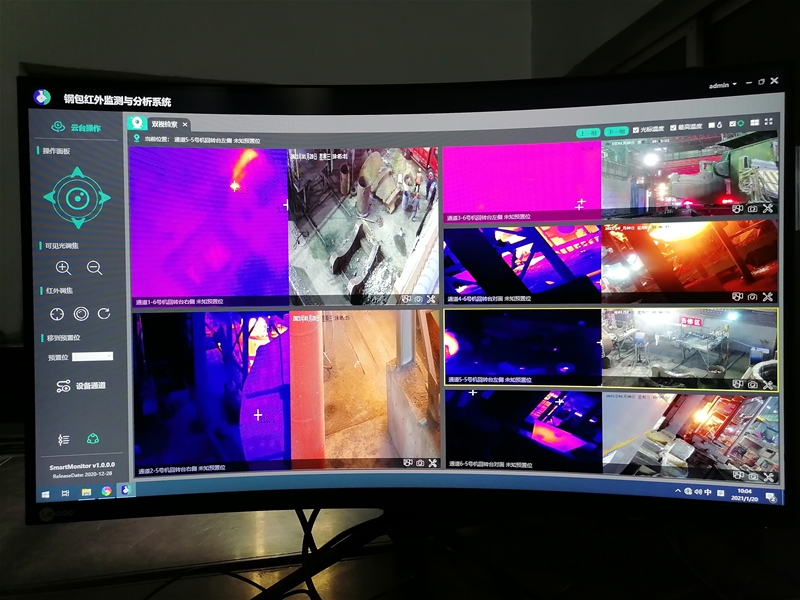 為確保鋼包安全運行,該單位引進了紅外熱成像檢測與分析系統(tǒng),并以此為基礎,開發(fā)、完善了龍鋼公司鋼包安全可視化管控平臺。該平臺采用波形圖形式直觀展現鋼包使用過程中各部位的溫度、內襯變化過程,預測鋼包壽命,實現在線鋼包的實時檢測和監(jiān)控,既能保證鋼包的安全運轉,又能做到異常情況提前預警,以便及時排除隱患。平臺包括現場待拆、砌包、烘烤、備用、在線等狀態(tài)鋼包,方便鋼包科學調度。對各時間段鋼包使用情況都進行了儲存,形成鋼包使用過程中溫度變化的大數據庫。