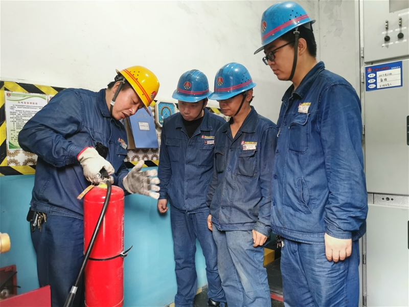 該作業(yè)區(qū)組織開展消防應(yīng)急演練活動(dòng),為員工講解滅火器的構(gòu)造和使用方法等消防知識(shí),現(xiàn)場(chǎng)演示手提式干粉滅火器的正確使用方法,進(jìn)一步增強(qiáng)員工基本防火常識(shí)和滅火自救技能,切實(shí)增強(qiáng)全員消防意識(shí)。按照消防應(yīng)急預(yù)案,模擬配電室內(nèi)線路短路起火,隨著一聲警報(bào)的拉響,人員立即快速對(duì)配電室配電柜滅火。演練過程中,班長重點(diǎn)講解日常生活中應(yīng)注意的消防安全知識(shí),從“防”得提前、“逃”得快速、“滅”得及時(shí)三個(gè)方面詳細(xì)講解了火災(zāi)發(fā)生時(shí)的逃生方法 及應(yīng)對(duì)措施,切實(shí)提高員工安全意識(shí)和應(yīng)對(duì)突發(fā)事件的處置能力。