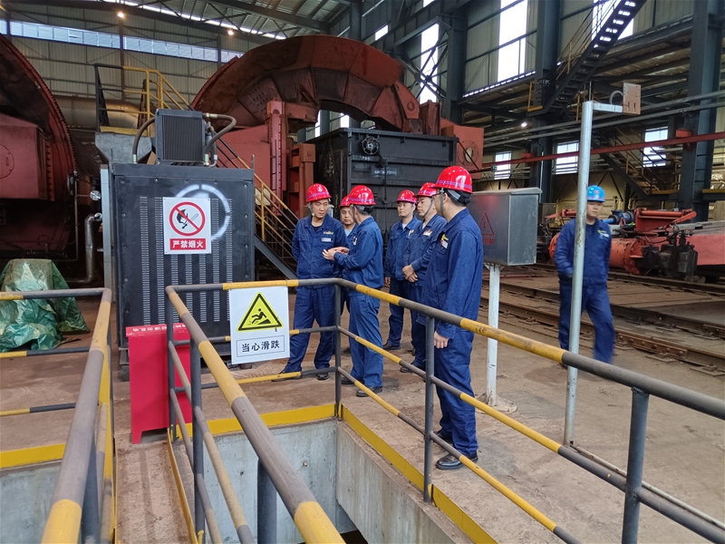 在煉鋼廠,邢宏昌詳細了解了鐵水銜接、廢鋼配加、環(huán)保設(shè)備同步運行率、混鐵爐、轉(zhuǎn)爐生產(chǎn)運行等情況,并就老區(qū)轉(zhuǎn)爐與連鑄機生產(chǎn)組織切換與鐵水供應(yīng)關(guān)系進行了了解。他要求,煉鋼廠要切實加強上下道工序信息溝通,根據(jù)高爐小時出鐵量實際,靈活切換爐、機模式,在保證生產(chǎn)穩(wěn)定的前提下,確保低成本運行。