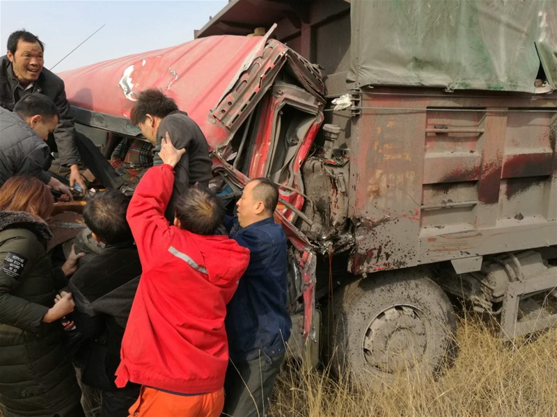 2017年11月的一天,他和同事出差前往山西省河津市對高鈣灰進行市場調研。返回途中,他發(fā)現兩輛車因交通事故導致司機被擠壓在駕駛室內,一人已經昏迷,另一人雙腿無法動彈,頭部正在流血。他當機立斷,喊了一嗓子“停車,趕快幫忙救人!”