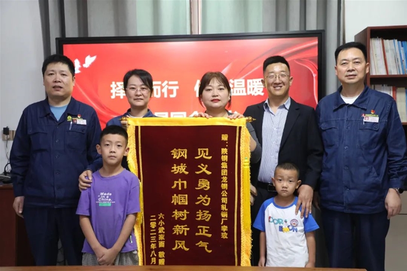 “兒子說(shuō),讓我一定要找到阿姨,是這個(gè)阿姨救了我們一家,我們要給阿姨送一面錦旗。”8月30日,韓城一家面館老板攜全家為軋鋼廠職工李玫送來(lái)一面錦旗,錦旗上“見(jiàn)義勇為揚(yáng)正氣鋼城巾幗樹(shù)新風(fēng)”十四個(gè)大字格外醒目。