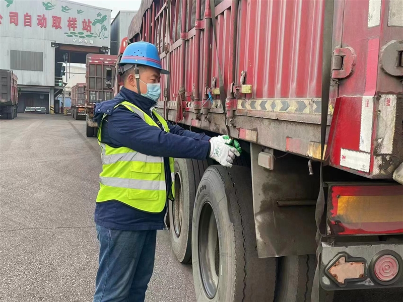 受疫情影響,公司近段時(shí)間對(duì)外來(lái)汽運(yùn)車輛采取不同措施,落實(shí)“外防輸入”,最大限度保供生產(chǎn)用料。少了面對(duì)面的接觸,但服務(wù)不能打折扣、降標(biāo)準(zhǔn)。北門初檢組長(zhǎng)曹志永正在提醒進(jìn)入初檢大廳的辦票人員:“您好,請(qǐng)排隊(duì)間隔一米登記,測(cè)量體溫,出示行程碼、健康碼、24小時(shí)核酸報(bào)告。”雖然廣播的語(yǔ)音在播放,但他依然穿著防護(hù)服耐心地對(duì)司機(jī)進(jìn)行溫馨提示。面對(duì)管控封條的車,他不怕辛苦和危險(xiǎn),緊跟著兩個(gè)工作人員不時(shí)遞水和面包,檢查車輛外觀封簽和水箱情況,跑前跑后替司機(jī)辦理進(jìn)廠票據(jù)和卡,然后囑咐司機(jī)全程不下車,佩戴好口罩,保護(hù)好自己。