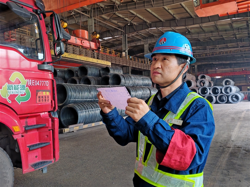 裝運(yùn)鋼材出庫是軋鋼工序的最后一道關(guān)。在這個(gè)崗位上,裝車工主要對(duì)每車出庫鋼材做最后的檢驗(yàn),核對(duì)產(chǎn)品標(biāo)識(shí)、每捆支數(shù)、重量、規(guī)格以及對(duì)運(yùn)輸過程的防護(hù)措施等進(jìn)行最后的檢查確認(rèn),確保出庫的鋼材根根是精品。同時(shí)要提前組織、合理調(diào)度車輛,加強(qiáng)現(xiàn)場出庫溝通,提高24小時(shí)鋼材配送到達(dá)率,及時(shí)把優(yōu)質(zhì)鋼材發(fā)送全國各地,不斷提高“禹龍”品牌服務(wù)質(zhì)效。