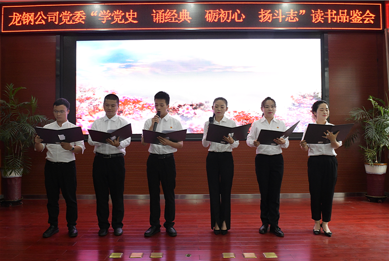 此次讀書品鑒會以“學(xué)黨史 誦經(jīng)典 礪初心 揚(yáng)斗志”為主題,創(chuàng)新黨史學(xué)習(xí)方式,以中國共產(chǎn)黨百年奮斗歷程為軸線,分為開天辟地(《紅船,從南湖起航》)、艱苦奮斗(《沁園春·雪》《七律·長征》)、崢嶸歲月(《回延安》《黨旗頌》)、百年風(fēng)華(《黨啊,我的母親》《盛世中國》《永遠(yuǎn)跟黨走》)四個(gè)篇章,以誦讀詩詞經(jīng)典的形式,全過程、全景式、史詩般展現(xiàn)了中國共產(chǎn)黨波瀾壯闊的百年歷程,環(huán)環(huán)相扣、由遠(yuǎn)及近,層層深入,為全員奉上了一次形象生動的黨史學(xué)習(xí)大餐,將豐富的黨史知識轉(zhuǎn)化為助推龍鋼高質(zhì)量發(fā)展的磅礴力量。
