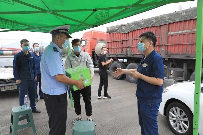 8月10日,公司黨委委員、工會(huì)主席趙春棠帶領(lǐng)工會(huì)辦公室一行到工業(yè)園區(qū)高速路口慰問(wèn)堅(jiān)守在防疫戰(zhàn)線上的工作人員,為他們送去礦泉水、方便面、飲料等慰問(wèn)品以及企業(yè)大家庭的關(guān)愛(ài)和溫暖。