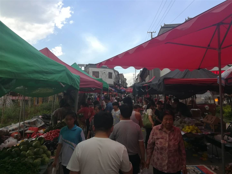 在西莊集這一天,天南地北的趕集的商販起了個大早,收拾好自己的商品,早早的來到集市的街道上占個攤位,將自己的商品小心翼翼的擺好,經(jīng)過商販們的一番忙碌,商品市場逐漸成形,有特色小吃,瓜果蔬菜,衣服布料,各式各樣生活用品,商品是琳瑯滿目,應(yīng)有盡有。集市上一般上午購物的人比較少,因為剛“上市”,價位自然高一點(diǎn),過了中午,購物團(tuán)逐漸增多,不同方位的人們心情愉快的開著小車,騎著摩托車,蹬著自行車等各式交通工具向集市挺進(jìn),人流是絡(luò)繹不絕,到達(dá)下午4~5點(diǎn)左右,集市人流量達(dá)到頂峰,你看整個集市熙熙攘攘,人頭攢動,熱鬧非凡,叫賣聲不絕于耳,促銷聲此起彼伏,買的聲音,賣的聲音,討價還價的聲音,熟人見面的寒暄聲,不知發(fā)生啥好事的哈哈大笑聲,形成一種集市上特有的交響曲,人們陶醉其中,樂在其中。在這里你總能找到自己心儀的商品,而且還可以貨比三家,以最優(yōu)惠的價格成交。在這里你還可以體會韓城的風(fēng)土人情,體驗一下人生百態(tài),品嘗本地特色小吃。你看,那幾位農(nóng)村大媽正在賣衣服的攤位上討價還價著,你一句,我一句,她一句,互相幫忙著砍著價,經(jīng)過二十幾分鐘的較量,大媽們最終獲勝,攤主無奈咬牙讓步,她們這才心滿意足的說笑而去;再看那邊的小吃攤上,熱騰騰的油鍋,爐火正旺,炸油糕的師傅將一塊塊面團(tuán)放入鍋里,頓時油浪翻滾,不一會兒黃燦燦,皮薄酥軟的油糕就出鍋了,“給我來5個,加點(diǎn)糖。”一位大爺坐在凳子上招呼著,很快油糕就上來了,大爺吃地津津有味,滿臉幸福。旁邊的羊肉饸絡(luò)攤上人已坐滿,有涼饸絡(luò),熱饸絡(luò),紅油辣子,加上蔥花和韭菜,再來一個油酥燒餅,看著人都眼饞,擼起筷子吃起來,看他們吃的多香啊!在看那邊的攤位前圍著好多人,上前一看,原來兩好哥們在抬杠哩,“我賣2塊”“我賣1塊”“我不要錢”“我再倒找1塊錢”兩人那夸張而又搞笑表情惹得圍觀群眾哈哈大笑。西莊集的火爆尤其在花椒成熟的季節(jié),由于西莊緊鄰盤龍山區(qū),又值摘花椒的農(nóng)忙時節(jié),山里的群眾那購買力令人昨舌,蔬菜瓜果,竹籠麻繩,農(nóng)藥化肥,無所不要,一買都是大客戶,回家的時候,拉貨的大三輪車裝得滿滿的,而且還是很多輛,“嚯,你看這購買力”,附近的群眾無不調(diào)侃的說。天漸漸晚了,趕集的人們滿載而歸,商販們收拾著準(zhǔn)備回家,這一天的集就這么拉下了帷幕。