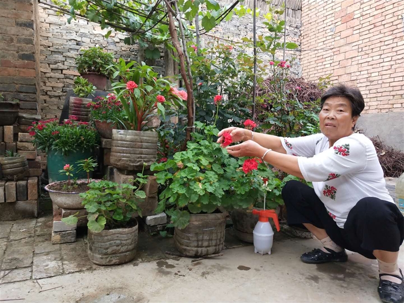 “你看,這個是繡球,我已經(jīng)繁殖了四盆,開花了會有粉紅、桃紅、大紅三種顏色,很好看;這個是月季,是我叫你水利哥給嫁接的,這一株上面就能開白、粉、黃三種顏色哩;還有這雙層的指甲花兒,也很耐看……”