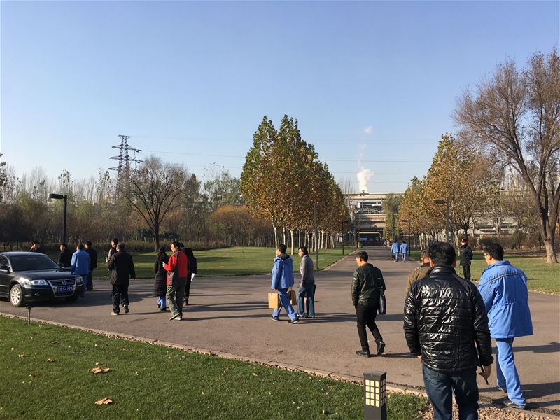 活動(dòng)期間,90余名代表共同出席了太鋼杯全國(guó)冶金行業(yè)職工美術(shù)書法作品展覽開(kāi)幕式,參觀了位于廠區(qū)內(nèi)的太鋼博物園及廠史展覽館。進(jìn)入廠區(qū),白色外墻的生產(chǎn)車間掩映在高低錯(cuò)落樹(shù)木植物之間,潔凈寬敞的柏油路上,各色線條清晰,機(jī)動(dòng)車道與非機(jī)動(dòng)車道分線而行,白色燈桿上,懸掛著勞動(dòng)光榮、勞動(dòng)偉大之類的文化標(biāo)語(yǔ),職工們身著淺藍(lán)色的工作服,愜然自信的行走。廠區(qū)噪音很小,完全感受不到工業(yè)生產(chǎn)對(duì)環(huán)境的破壞干擾。相反,倒覺(jué)得仿佛是進(jìn)入了一座城市公園。十里鋼城完全與自然環(huán)境和諧一體,與城市和諧一體。