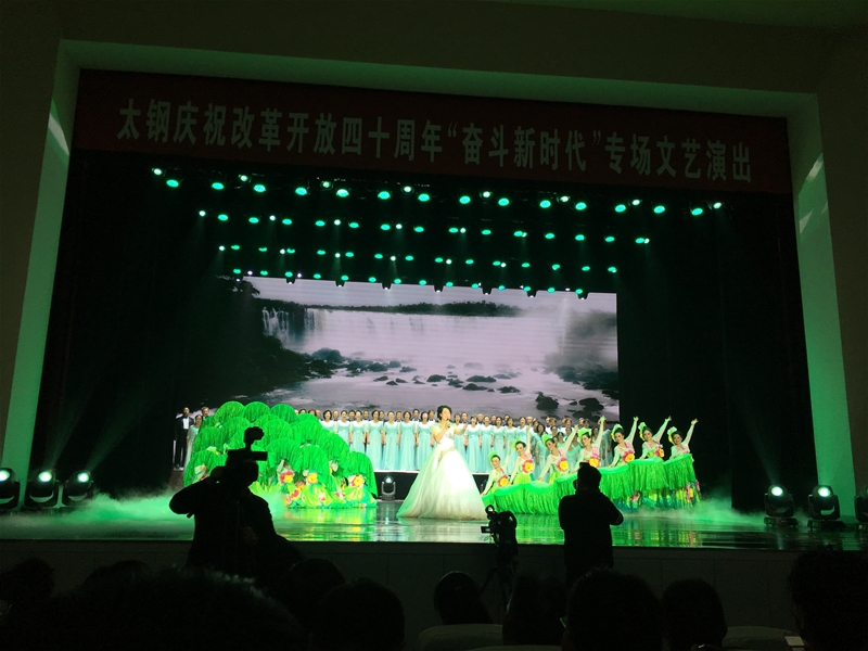 如果說(shuō)參觀活動(dòng)是開(kāi)胃菜,其后的太鋼慶祝改革開(kāi)放四十周年奮斗新時(shí)代專場(chǎng)文藝演出,則更讓代表們感受到太鋼職工深厚壯美的精神底蘊(yùn)。開(kāi)場(chǎng)節(jié)目《黃河鼓韻》把觀眾帶入到大浪滔滔、奔騰呼嘯的黃河壺口,黃土高原的古謠,把人們的神思帶到了磅礴廣闊的黃河呂梁。鼓槌輕擊,似安靜水流;鼓槌揚(yáng)起,似萬(wàn)滔奔鳴。傳統(tǒng)鼓樂(lè)竟如歌如訴,編排之美妙使人心曠神怡。太鋼職工表演的群口快板節(jié)目,把太鋼四十年發(fā)展變化巧妙穿插在丈母娘與四個(gè)女婿的笑語(yǔ)對(duì)話中,又見(jiàn)匠心之妙。所有的節(jié)目編排精美,大氣沉美,充分展示了太鋼職工高品位的文藝素養(yǎng),文明禮儀的深厚積淀,折射出太鋼職工對(duì)于生活的熱愛(ài),對(duì)于真善美的藝術(shù)追求,以及太鋼職工雙手創(chuàng)造的幸福文化生活。詢問(wèn)得知,太鋼文藝協(xié)會(huì)有作協(xié)、美協(xié)、書法、攝影、舞蹈、體育等八個(gè)分會(huì)之多,文藝人才門類齊全,文藝活動(dòng)豐富多彩。
