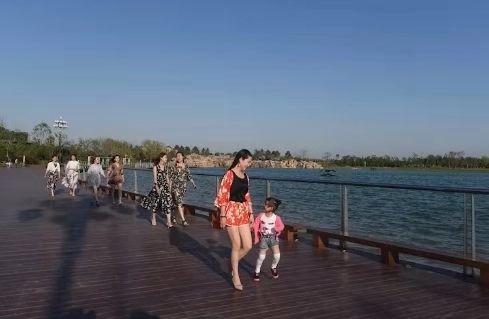 湖堤上,有幼兒牽著媽媽的手,姍姍學(xué)步;有情侶手拉著手,走著笑著;有年長(zhǎng)者推著輪椅,載著老伴,緩緩前行……湖邊小廣場(chǎng)上,忽聽(tīng)得鼓樂(lè)聲響起。那是來(lái)湖邊休閑的市民和游客們正在欣賞著自樂(lè)班的秦腔表演,動(dòng)情處,掌聲雷動(dòng),喝彩聲不斷。恬靜而不失動(dòng)感,靈秀中透出質(zhì)樸,顯現(xiàn)了北方地域的獨(dú)特景致,動(dòng)靜交融,渾然一體。