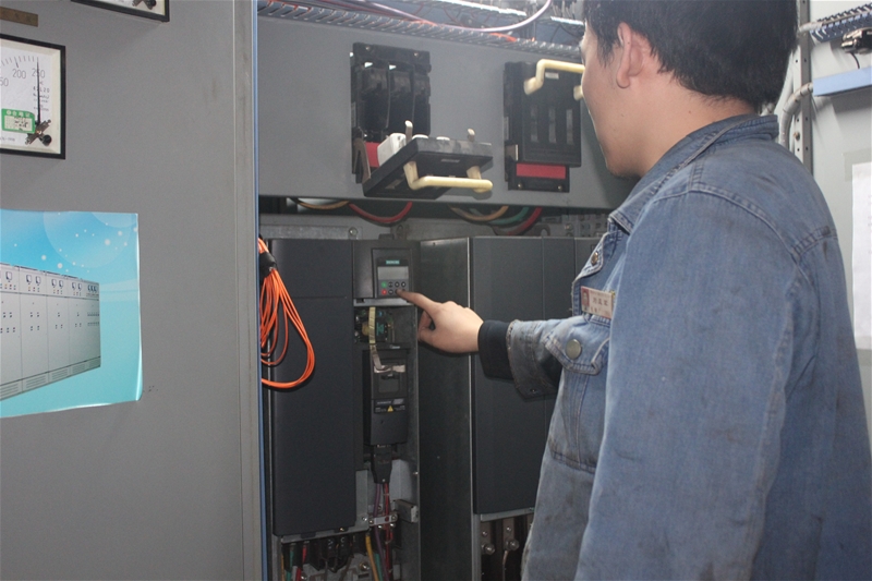 項(xiàng)目簡(jiǎn)介:原高線散冷風(fēng)機(jī)共有4臺(tái)315KW變頻電機(jī),長(zhǎng)期運(yùn)行,電流550A,4臺(tái)風(fēng)機(jī)小時(shí)耗電1130度,由于變頻器不能頻繁啟停,操作工根據(jù)現(xiàn)場(chǎng)不生產(chǎn)時(shí)由人工降頻運(yùn)行,由于人為原因,降頻不能及時(shí),導(dǎo)致電能浪費(fèi)。解決方案:編制自動(dòng)判斷程序,當(dāng)PLC系統(tǒng)判斷吐絲機(jī)無(wú)鋼延時(shí)3分鐘后自動(dòng)降頻到20HZ,以實(shí)現(xiàn)降頻節(jié)能的目的。當(dāng)系統(tǒng)判斷軋線有鋼后自動(dòng)恢復(fù)原設(shè)定轉(zhuǎn)速以滿足生產(chǎn)需要。年節(jié)能效益達(dá)26萬(wàn)元。
