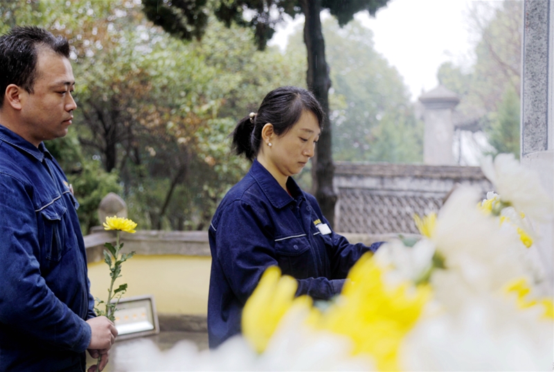 圖三:全體人員向革命烈士敬獻(xiàn)鮮花,向為人民解放事業(yè)和國家建設(shè)事業(yè)英勇獻(xiàn)身的烈士表達(dá)深深敬意。