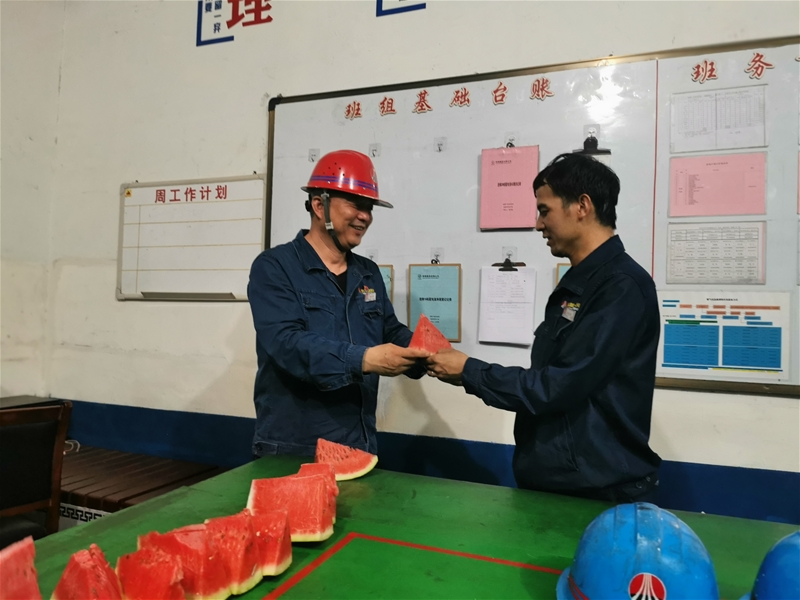該黨支部堅持“以人為本,服務(wù)職工”的宗旨,切實將黨史學(xué)習(xí)教育轉(zhuǎn)化為服務(wù)基層一線的實際行動,全心全意為職工辦實事、辦好事。為做好夏季安全生產(chǎn)和勞動保護(hù)工作,落實好防暑降溫措施,成立了送清涼工作小組,深入一線為職工送上西瓜、毛巾、飲料、雪糕、綠豆湯等。每到一處,該單位領(lǐng)導(dǎo)班子都與職工進(jìn)行交流,了解職工生活、工作中需要解決的難點問題。一瓶水、一塊西瓜微不足道,卻讓一線職工在高溫下感到絲絲涼意,雖沒有華麗的語言,卻讓工友們切實感受到一股暖意。