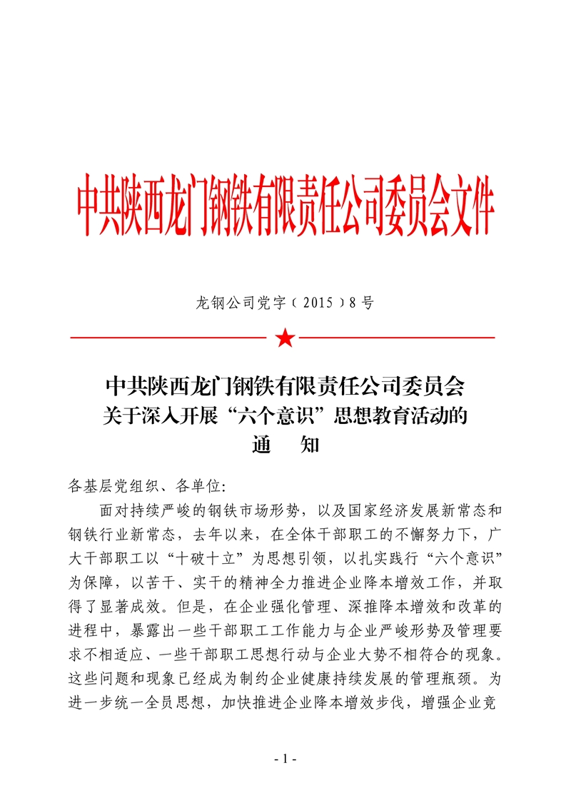 中共陜西龍門鋼鐵有限責(zé)任公司委員會關(guān)于深入開展“...