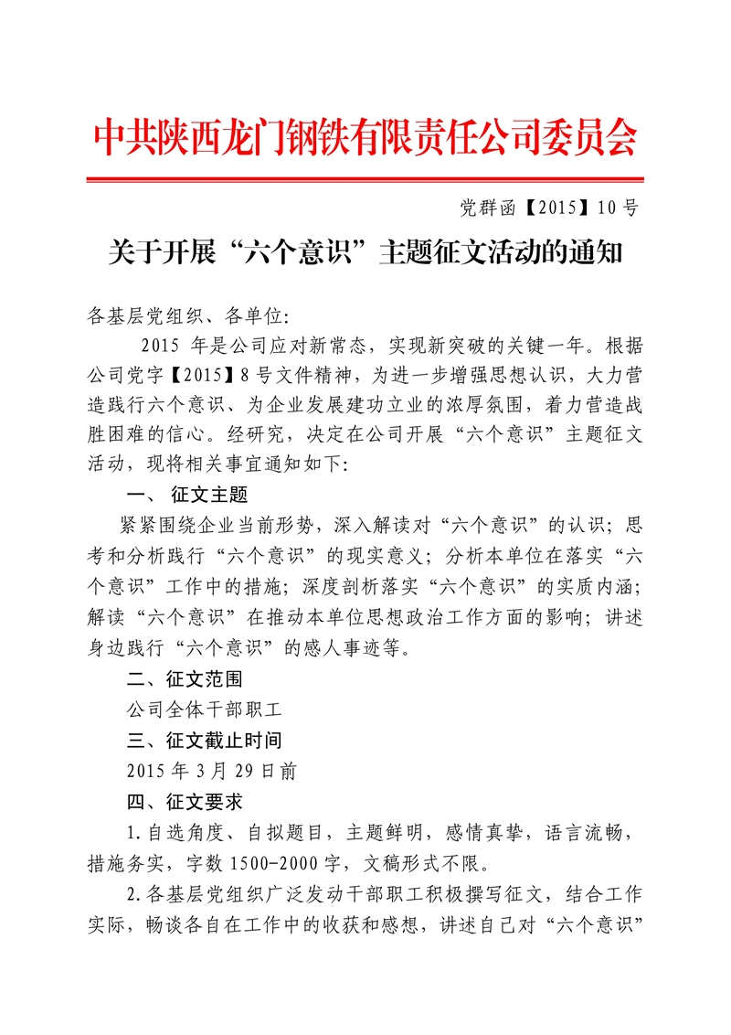 中共陜西龍門鋼鐵有限責(zé)任公司委員會 關(guān)于深入開展“六個意...